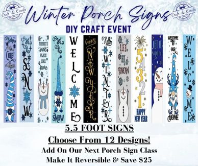 Each sign is made on reclaimed barn wood & is 10x26” completed. The only thing you need to bring is yourself & a bit of creativity.